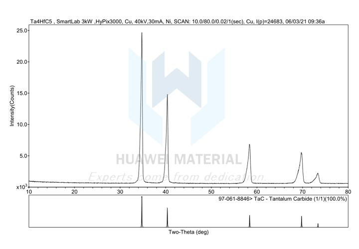 | Ta4HfC5-2 | -325mesh | >99.5 | ≤0.5 | ≤0.05 | ≤0.10 | 6.12~6.23 |